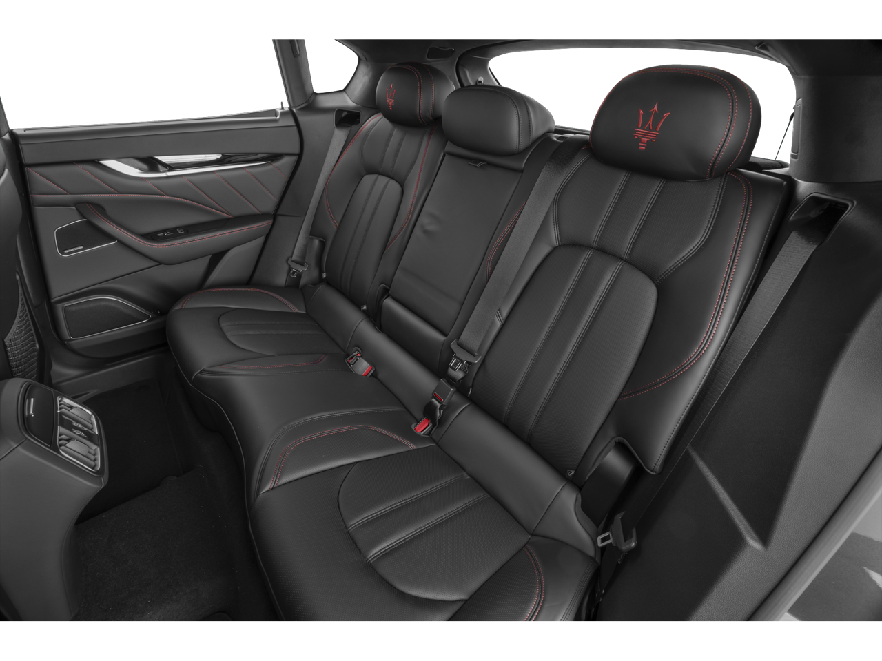 The Nerissimo Modena Package elevates the Levante's bold styling with black window surrounds, piano black roof rails, body-color door handles, and dark taillamps, creating a sleek, modern contrast. Completing the look are 21-inch Gloss Black Anteo staggered wheels, giving this luxury SUV a powerful, athletic stance.