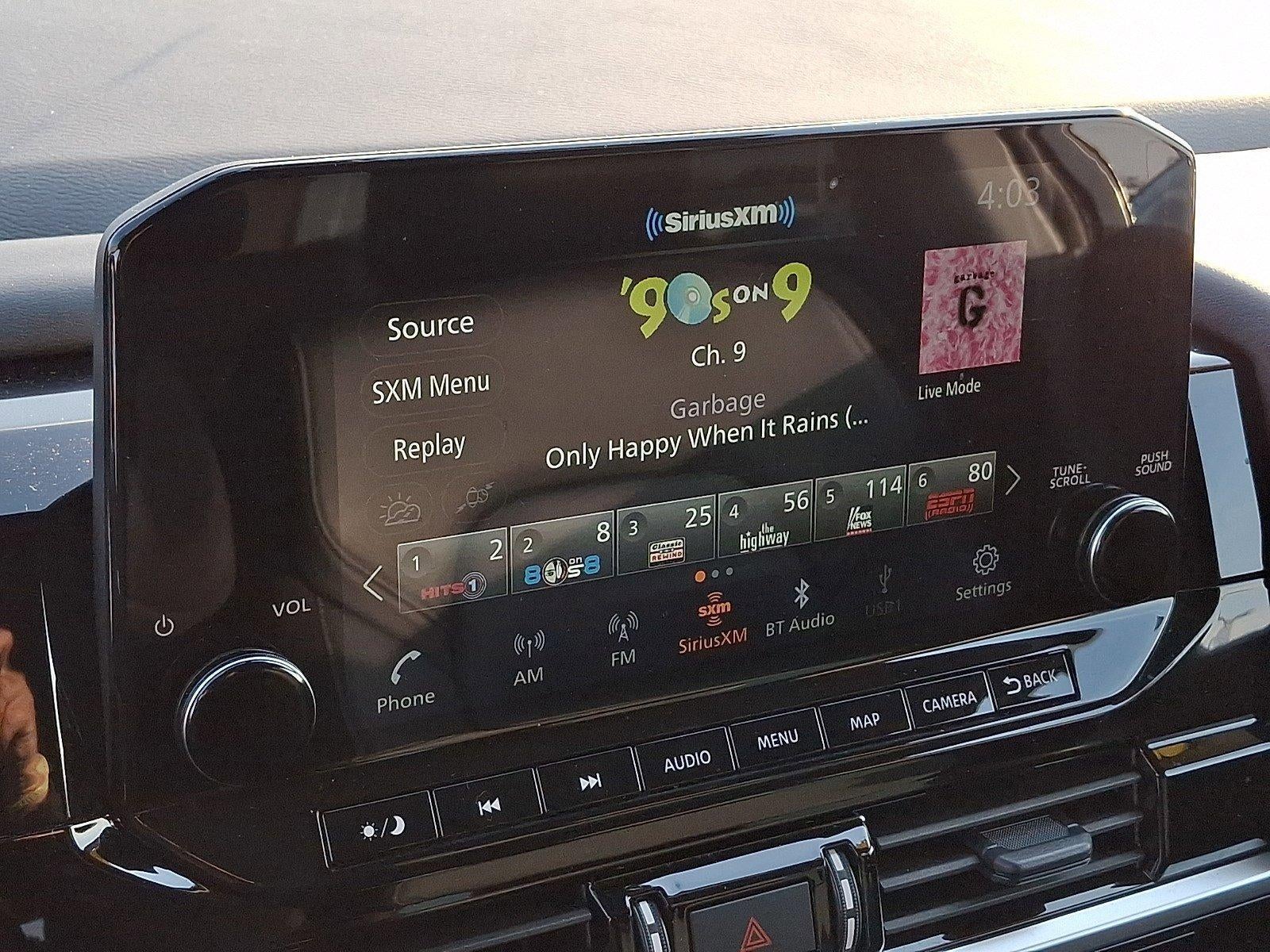 - Radio: AM/FM Audio System -inc: 6 speakers, Radio Data System (RDS), wireless Apple CarPlay, Android Auto, 9" color display w/multi-touch control, SiriusXM satellite radio w/advanced audio features, 2 illuminated front USB connection ports (1 type A, 1 type C) for iPod interface and other compatible devices, Bluetooth® hands-free phone system and streaming audio, Speed-Sensitive Volume control (SSV), hands-free text messaging assistant and Siri Eyes-Free/Google Assistant voice recognition